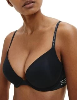 Give your bust the attention it deserves with this push-up bra from the CK One Micro range at Calvin Klein. Minimalistic and simple in design, this bra is a no-fuss and practical bra perfect for everyday wear. The cups are underwired with soft foam padding, combined with a plunge neckline to give you an amazing cleavage. This bra features subtle Calvin Klein branding on the straps and back, with elasticated trims for a flexible and comfortable fit.