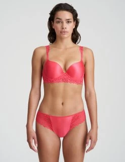 Accentuate your assets with the Elis push-up bra by Marie Jo. Comfortable moulded cups give you a smoother silhouette under clothing The push-up cups highlight your cleavage and give you a seductive volume boost. Low cups highlight your cleavage and are easily concealed under low-cut tops and dresses. Feminine lace adorns the band and wings of this bra, extending into a flattering longline style that contours to your body. The adjustable shoulder straps feature lace trims that you will want to show off. Pair with matching lingerie to create a coordinated look.
