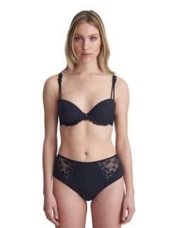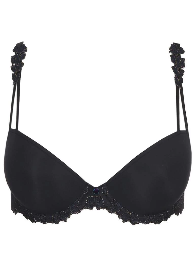 This Marie Jo Padded Bra is an excellent everyday bra to add to your bra-drobe. This non-transparent bra has padded cups that are extremely smooth, making a seamless finish when under clothes. The cups are underwired, giving your bust amazing support. This bra has a deep plunge neckline, accentuating your cleavage. The underband of the bra features an elegant design of lace, which trims the bottom of the cups. The straps are adjustable and the back of the bra has a hook and eye fastening.