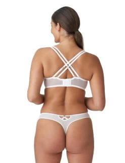 Watch your confidence soar in this stunning piece from the First Night collection by Prima Donna Twist. The underwired piece provides security and a flattering uplift to the cleavage, that is further highlighted by the lace draping affect which promotes a fuller cleavage. The balcony style displays the uplifted bust, perfectly held in place with specifically placed padding for a forward projection and combined comfort. Both the wings and centrepiece are made from a highly elasticated mesh which secures the piece as well as ensuring a smooth touch to the skin. The straps are fully adjustable and allow adaptation of fit, being able to be worn normally, or in a cross-back style. The piece is finished off for optimal personalisation of fit with a hook and eye closure.