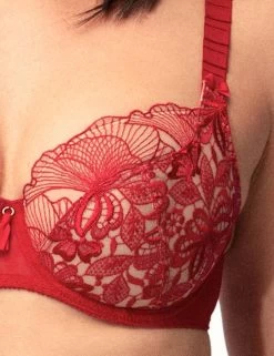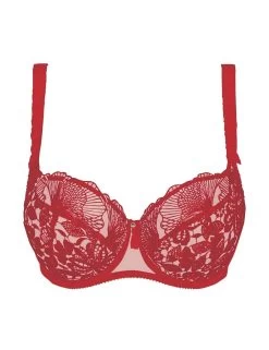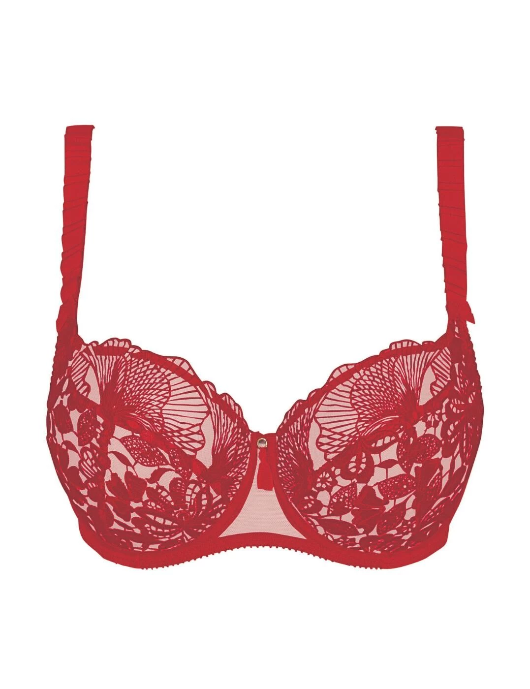 Let yourself be seduced with a little luxurious touch to your every day with this Agathe balcony bra from Empreinte. The traditional 3-part structured cups have a lower neckline and a half-cup style, perfect for your more revealing outfits. The bra is made out of a semi-transparent tulle material that is decorated with striking floral embroidery on the cups, giving you a feminine feel. The scalloped edges of the cups make this bra even more elegant. The cute little tassel detail in between the bust and the interesting textured ribbon overlay on the straps give this bra an original look. The underwiring, hook and eye back closure and the adjustable straps are there for the best fit.