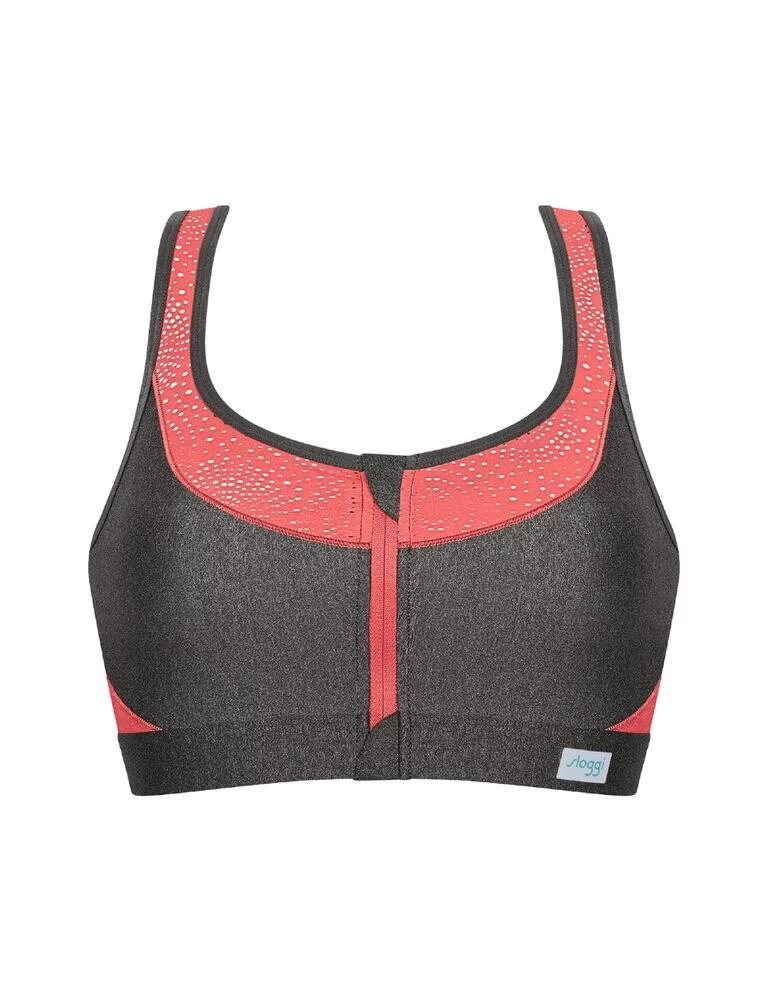 The Sloggi Move Fly range features practical designs fused with innovative fabrics. Designed with HeiQ SmartTemp thermoregulation technology which is combined with highly breathable jacquard fabric, providing ultimate comfort during your work-outs. Featuring non-padded and non-wired cups with a mesh lining and zip closure to the front. The Bi-stretchability within the fabric allows for excellent freedom of movement whilst the high-kick back keeps you supported and comfortable. This sports bra is perfect for those living an active life.