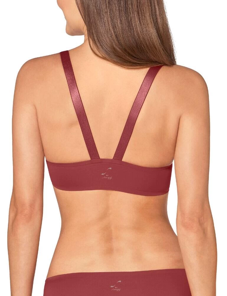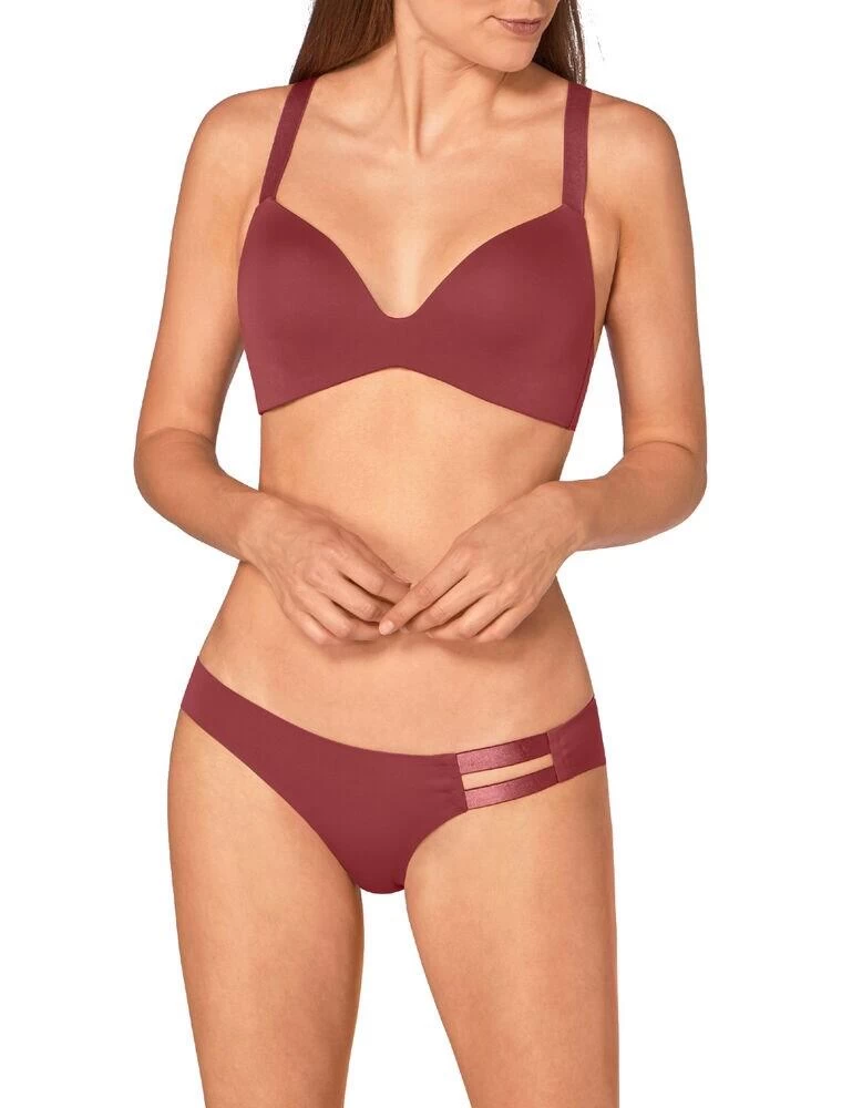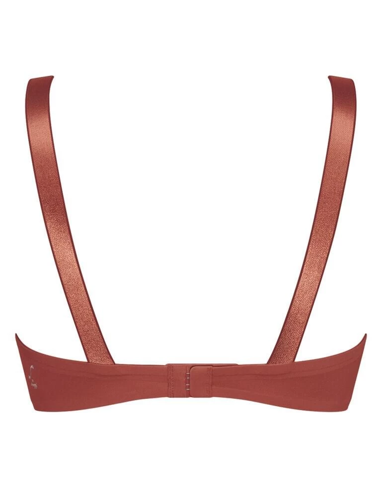 Say goodbye to annoying fastenings, detailing, hooks, the lot, with this bra from Sloggi’s Substance range. This bra will give you a completely smooth silhouette, with seamless, bonded finishes and no fancy detailing, great for invisibility under any clothing. The cups are non-wired for a natural shape, but have padding for extra boost and shape, on a scooped, plunge neckline for a fantastic cleavage. Comfortable, wide, stretchy straps come together at the back in a close-to racerback style for ease of movement.