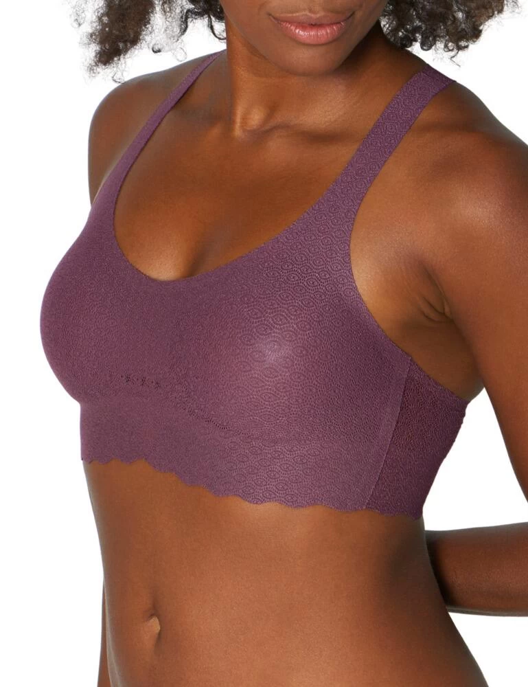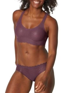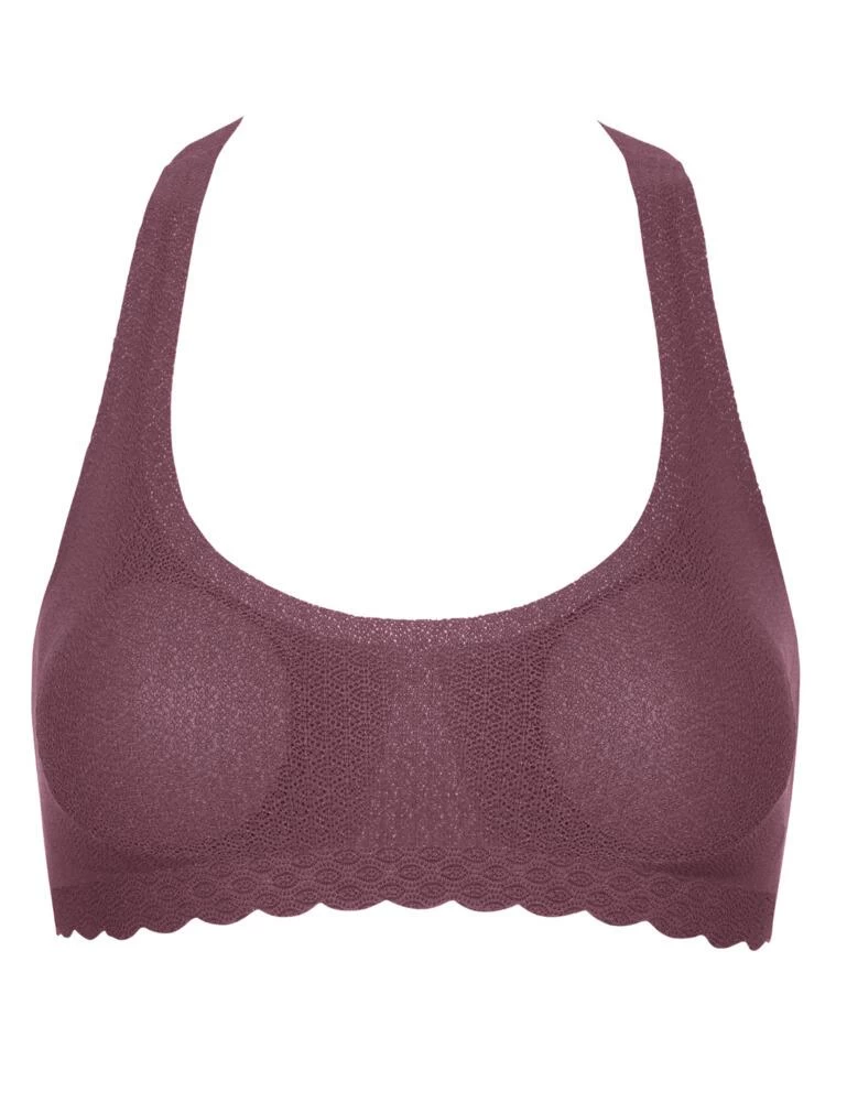 8d Zero Feel is now in lace! The Sloggi zero feel range is so popular thanks to the unbeaten comfort and innovative design. This bra top is no exception made from super soft stretch lace with a seamless finish. The bra features light padding and a mesh lining for support but no uncomfortable underwire to dig in. The wide sides, straps and racer style back give you all the support you need, so there is no compromising. The curved neckline and racer style, allows you to wear this under any outfit with confidence.