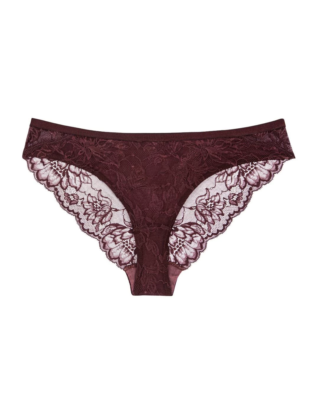 - Cheeky semi-sheer lace rear