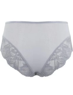 The Radiance collection by Panache perfectly combines comfortable fits and feminine styles. This deep brief boasts a flattering high rise that sits on your natural waist. An opulent graphic lace adorns the front of the brief adding contrast to the sheer mesh panels. Soft scalloped lace adorns the edges, softly moulding to your curves. Pair with matching lingerie from the range for a coordinated look.