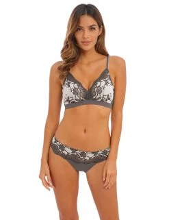Spice up your lingerie collection with the Wacoal Florilege tanga brief! The full lace waistband with scallop edging adds a romantic and feminine flair to this piece. The minimal rear coverage and the free leg cut back ensures there are no visible panty lines in sight. This piece is cut with a low-rise waist for a flirtatious fit. And if you want to feel coordinated, style with other available items in the matching Wacoal Floriege range.
