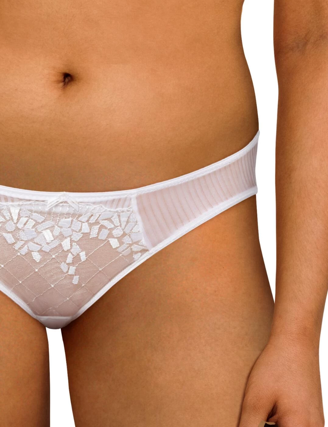 Make sure that your daily lingerie choices are as comfortable as they are stylish with the Pont Neuf collection by Chantelle. These gorgeous briefs feature traditional everyday style with comfortable full rear coverage and a mid-to-high-rise waist. In the centre front, the briefs are adorned with captivating embroidery in a geometrical pattern. The front sides extend to the back in a vertical striped pattern, which adds a trendy vibe to this beautiful design.
