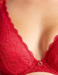 Seductive as ever Aubade has added another delightful addition to their romantic Rosessence range. The seductive comfort triangle plunge bra promises not to relinquish comfort in the name of style, but rather it creates a bra that will be your new ally for a long time to come. The romantic triangle plunge cut is created with a luxurious high stretch Galon de dentelle jacquard for your comfort. Ever adaptable to your needs this non-padded bra has straps that can be adjusted while the wiring will offer you the extra support to frame your breasts perfectly. The delicate details add to the extravagance of this product with the crystal in the middle of the bra and the branded Aubade ring above it. Every aspect of this product adds to a sensual romantic look it creates and due to its clever engineering, you can rely on the comfort of it. This style is also suitable for larger busts.