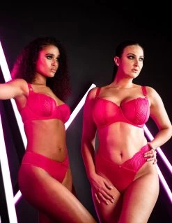 The way small details can transform a classic bra into the seductive weapon in your arsenal is truly fascinating. This Authority balcony bra from Scantilly by Curvy Kate has this quality about it. The semi-sheer materials invite to look for any tempting glimpses of your skin, while the classic balcony style, combined with the underwired cups, provide comfort and support, temptingly shaping your bust. The small details can be seen in the delicate rose gold hardware elements that subtly catch the eye. As a centrepiece, this bra has exquisite lace panels on the cups featuring an interesting abstract pattern that captures the attention.